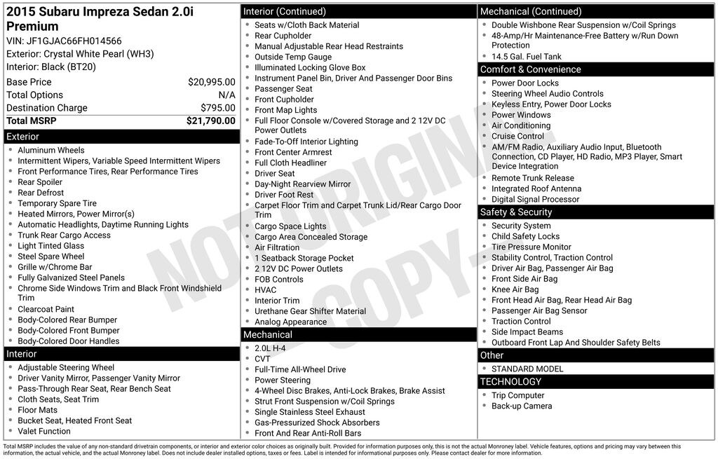 2015 Subaru Impreza 2.0i Premium
